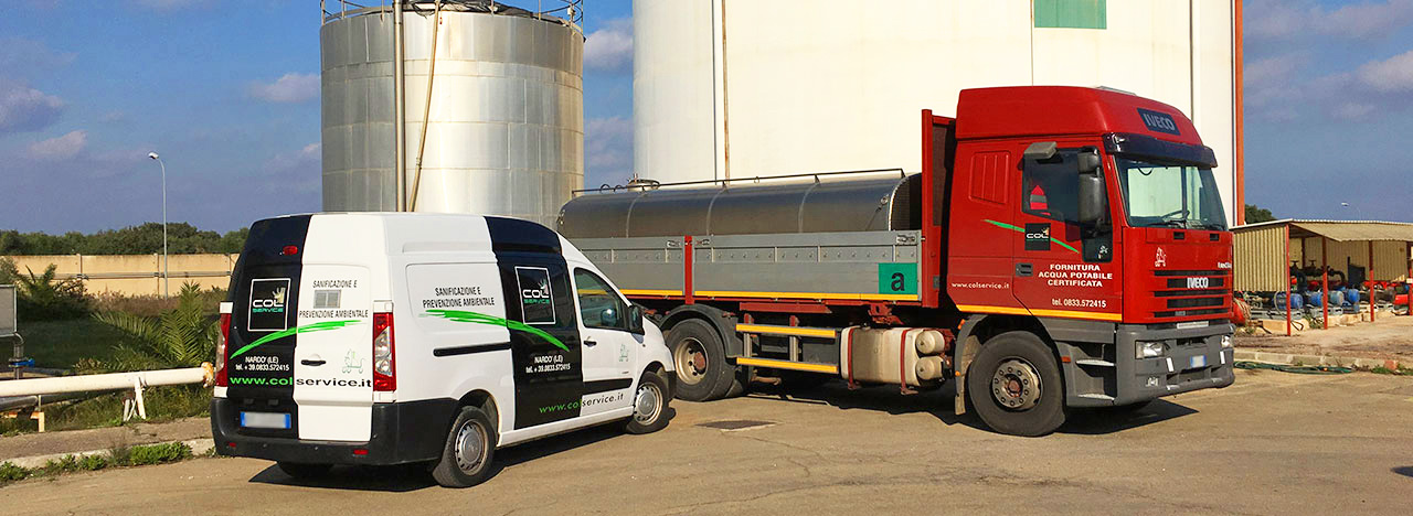 Il servizio Water Service include due categorie di prestazione: la sanificazione dei serbatoi e il trasporto di acqua potabile. Entrambe le categorie di servizi sono messe in atto da Colservice grazie alla presenza di operai specializzati, mezzi di trasporto e attrezzature di sanificazione, idonei per il comparto acqua.
